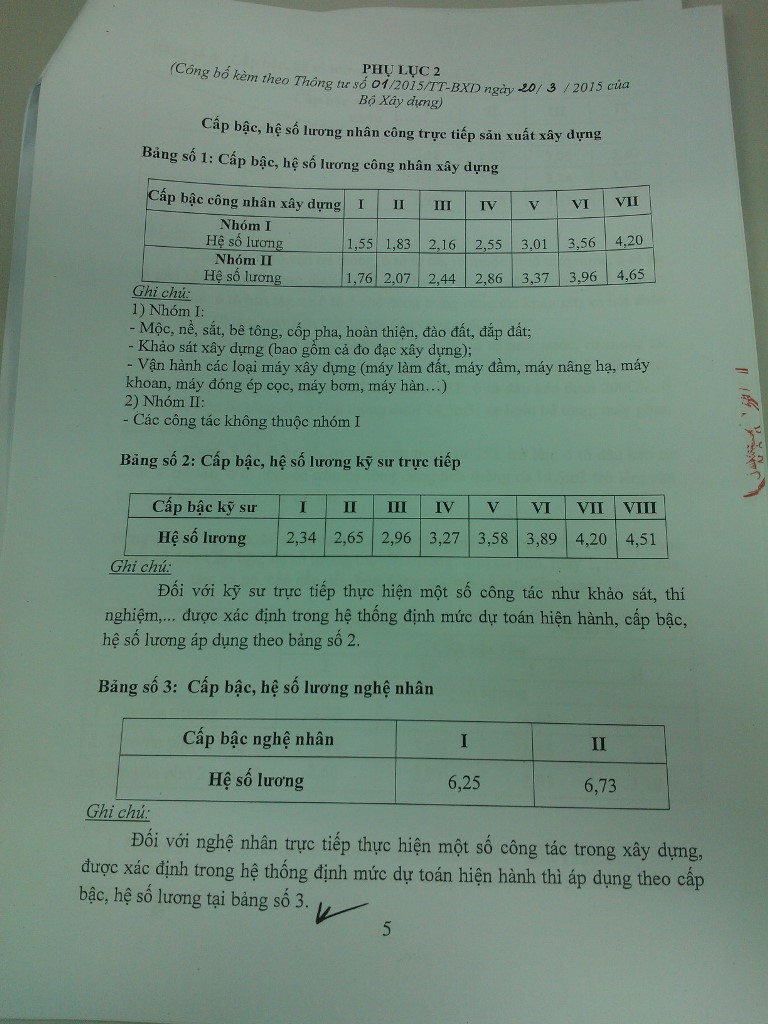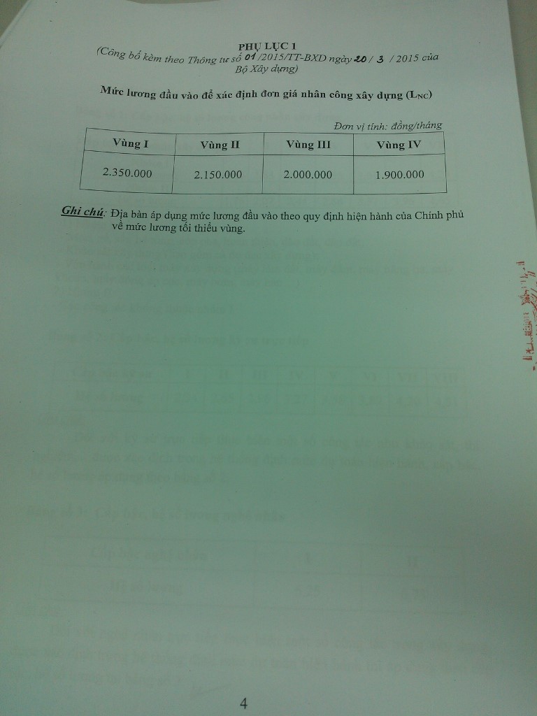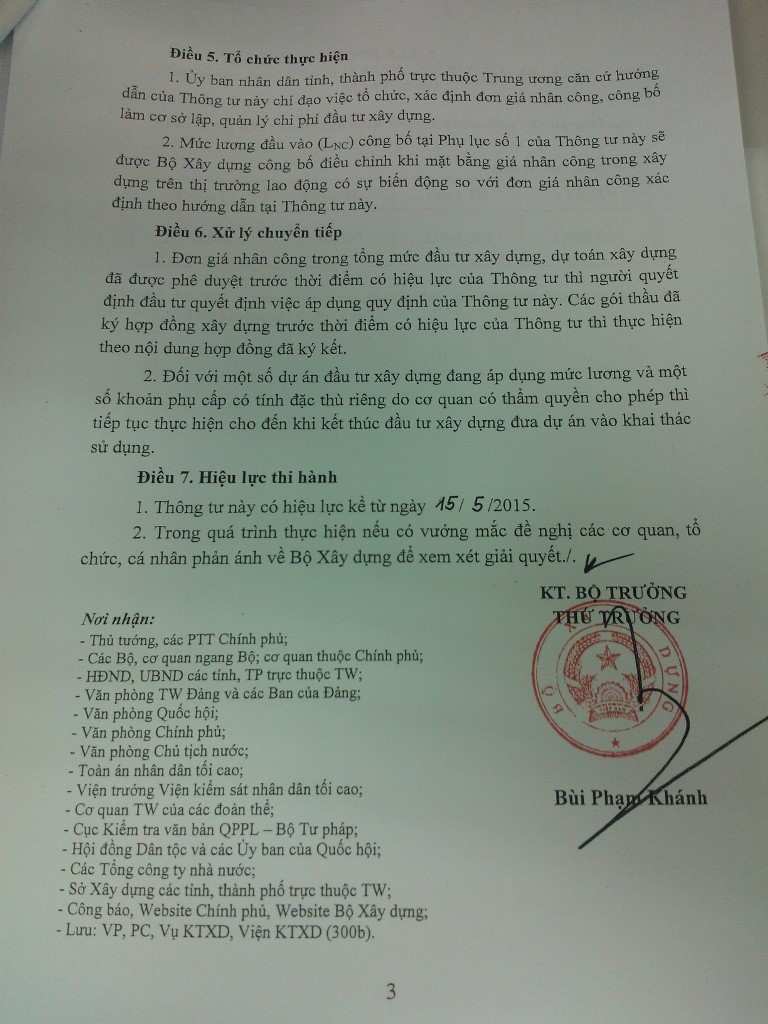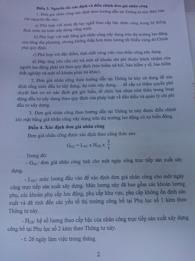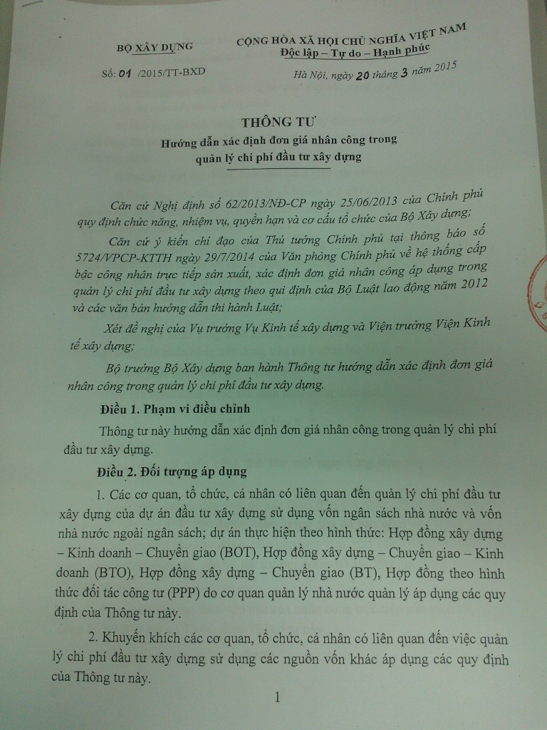 Thông tư 01/2015/TT-BXD: xác định đơn giá nhân công